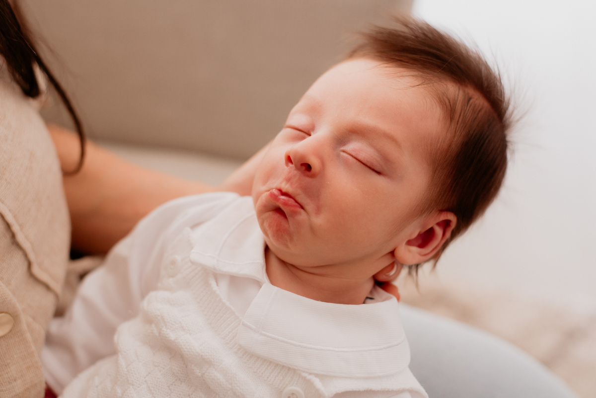 Dos pequenos detalhes, como as mãozinhas, os bocejos e o descanso no colo, aos instantes de afeto entre a família, cada fotografia carrega a essência desse começo.